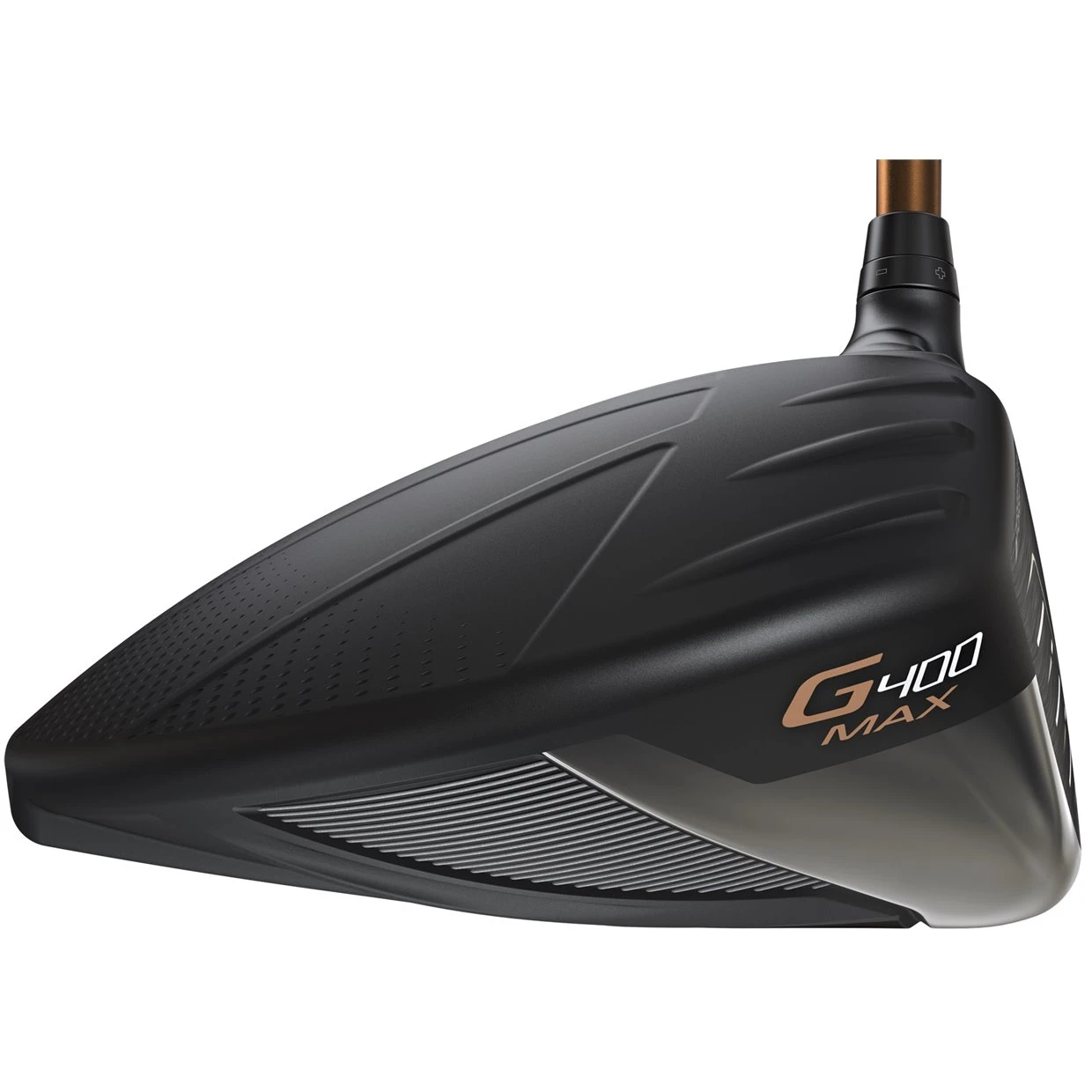 The Ping G400 Max driver is a great fit for players looking to add distance through extraordinary stability and forgiveness. The 460cc head features Dragonfly Technology to thin the crown and position the CG low to maximize MOI for longer, straighter drives. The thin T9S+ forged face flexes more to ramp up ball speed for consistently long, straight drives and the face is textured to increase friction and reduce spin. The domed crown combined with bolder turbulators reduces drag to generate significant clubhead speed and ball velocity for distance with stability while the textured crown and infinity edge form a pleasing view at address.